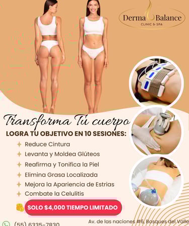 En Derma Balance Clínica & Spa preparamos ofertas especiales para que puedas transformar tu piel y cuerpo con tratamientos profesionales, seguros y con resultados reales.